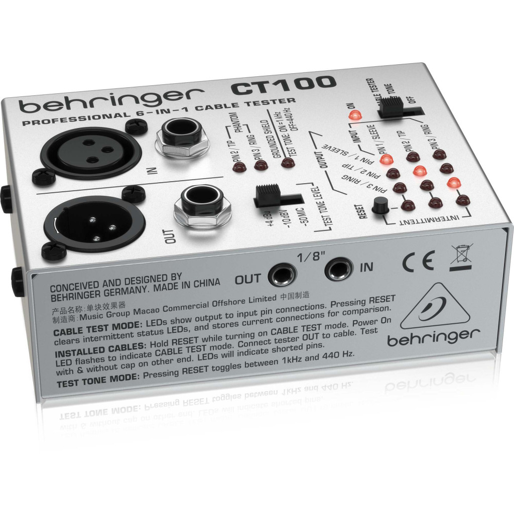 A CABLE TESTER CT100 egy okos, hordozható, és hihetetlenül kedvező árú megoldása annak, hogy a következő felvételed zökkenőmentesen folyjon. Kérdezd a BEHRINGER kereskedődet! Ez lesz a leghasznosabb eszköz a készletedben!